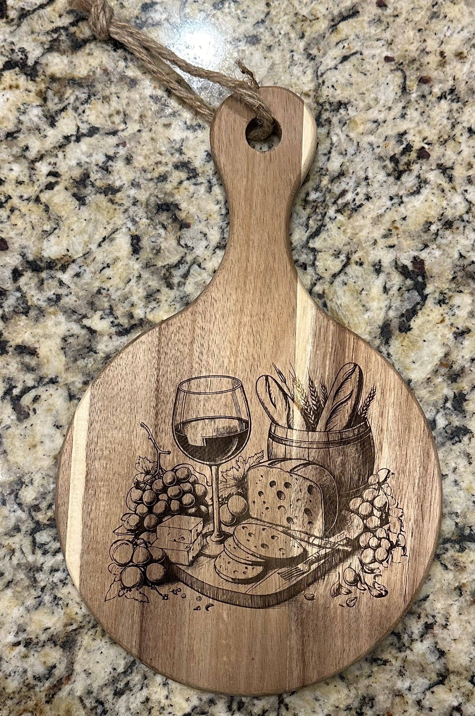 12.5”x8” wooden cutting board to be laser engraved to your liking.