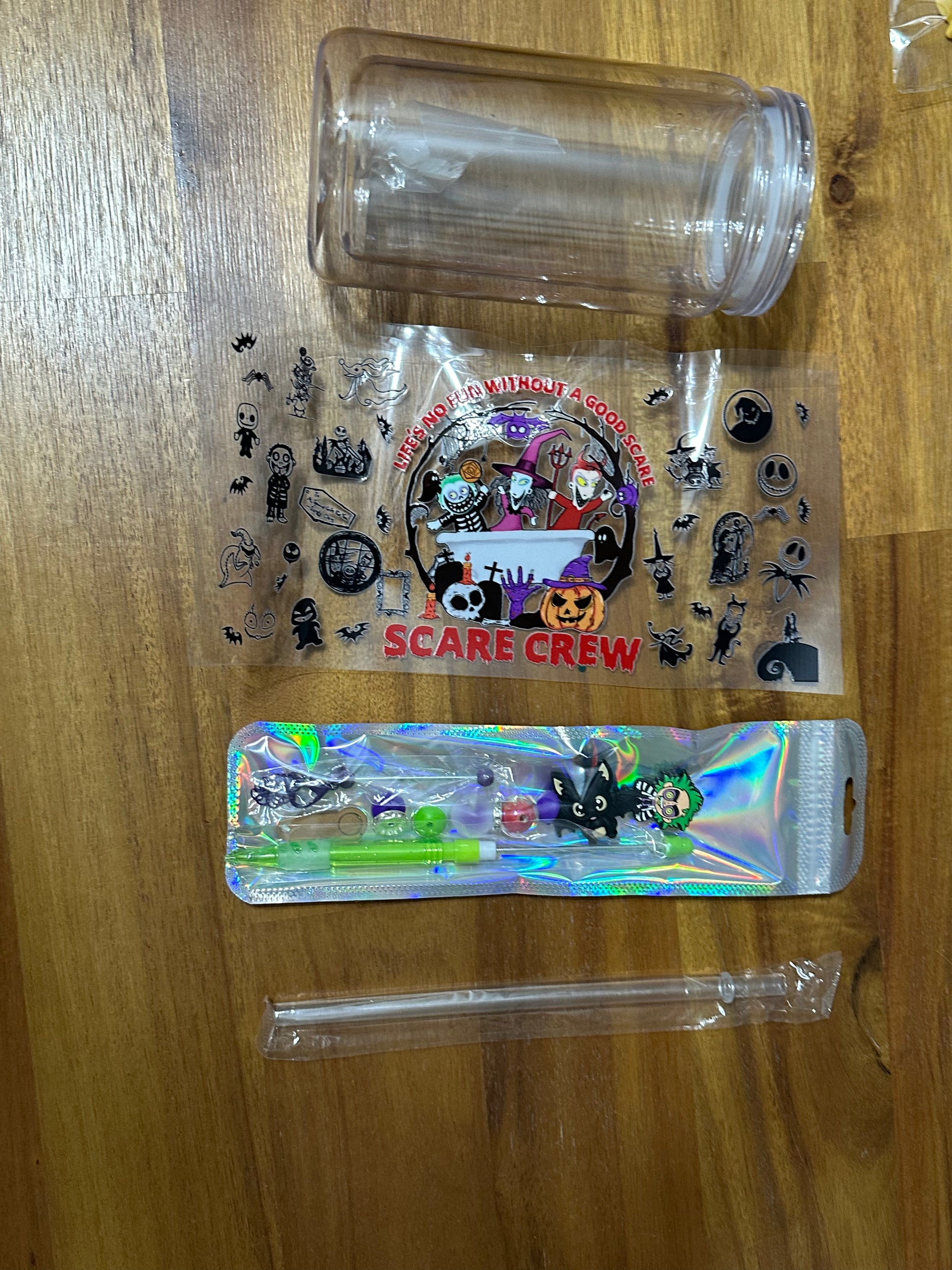 16 oz snow globe tumbler, with matching pen and straw charm.
