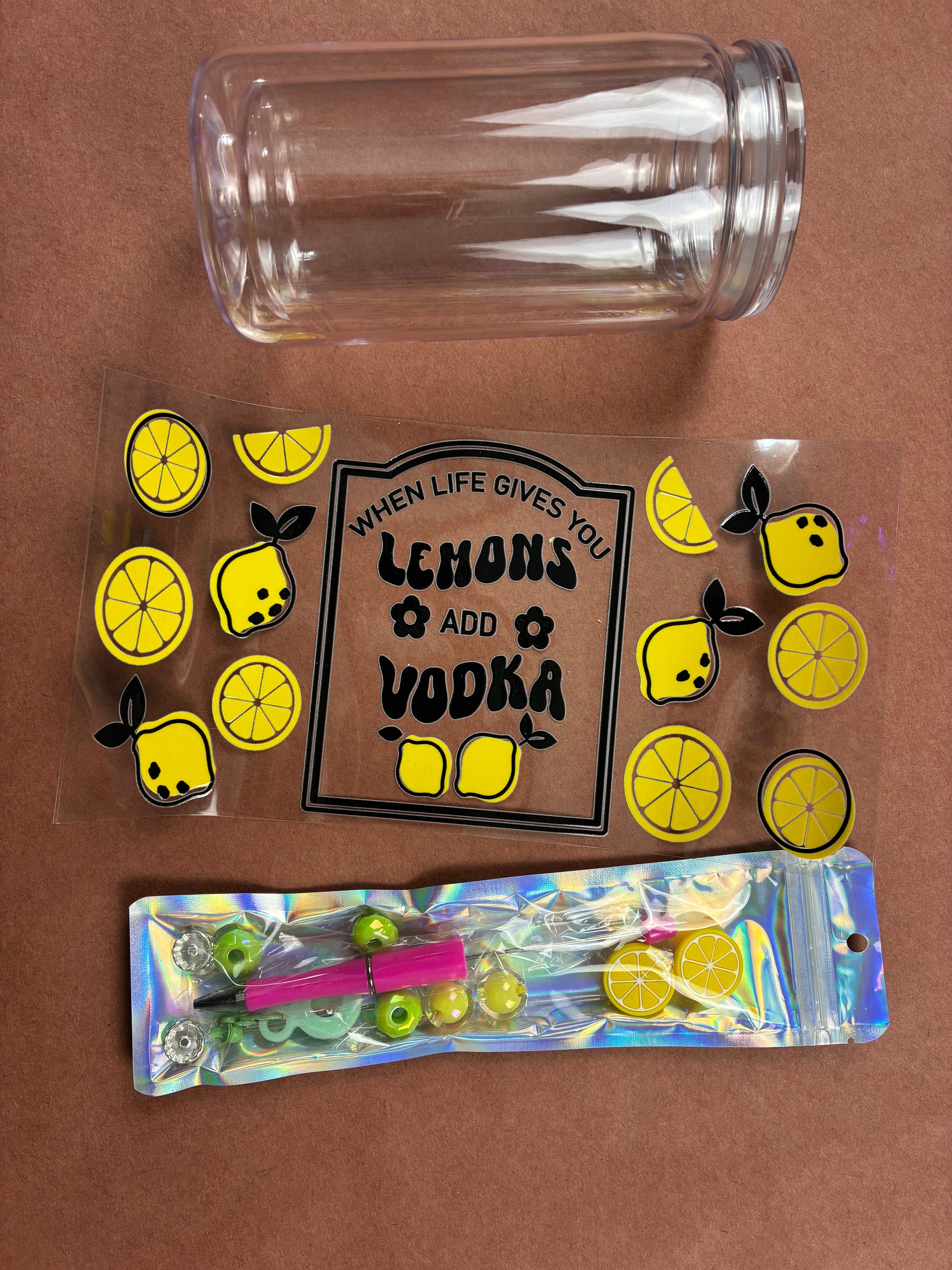 16 oz snow globe tumbler, with matching pen and straw charm.