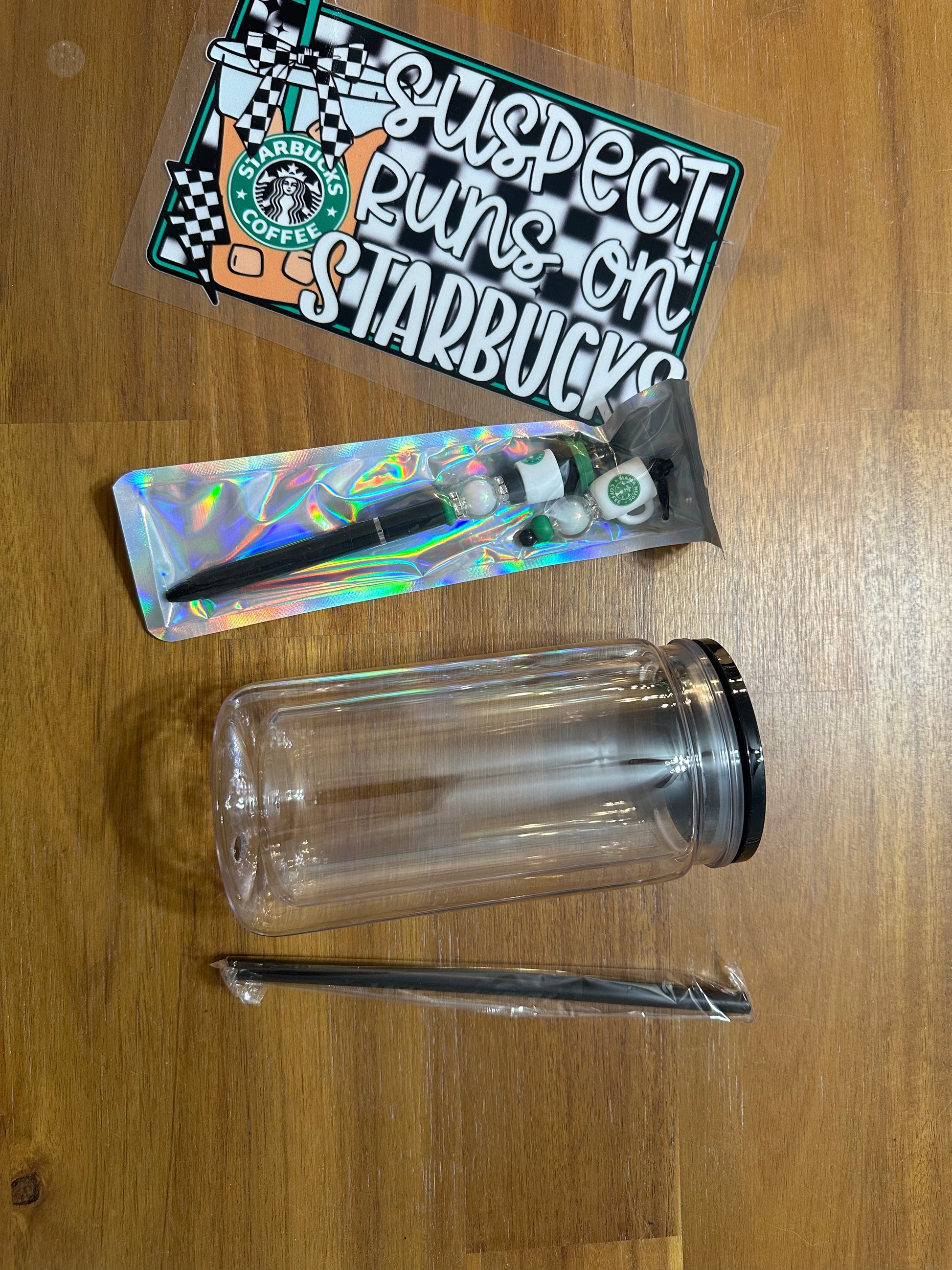 16 oz snow globe, comes with matching lid, straw, pen and straw charm.